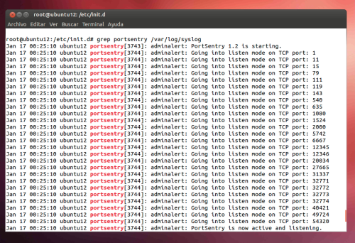 root@ubuntu12:/etc/init.d# grep portsentry /var/log/syslog