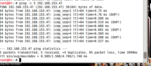 root@bt:~# ping -c 5 192.168.153.47