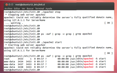 root@ubuntu12:/etc/init.d~# ./apache2 start root@ubuntu12:/etc/init.d~# ps -eaf | grep -v grep | grep apache2