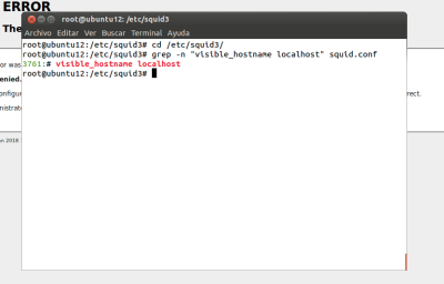 cd /etc/squid3/ grep -n "visible_hostname localhost" squid.conf