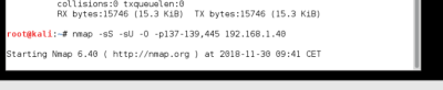 Utilizamos el nmap TCP SYN Scan (-sS) y UDP (-sU) para buscar rápidamente en el XP los puertos de NetBios 137 a 139 y 445. Tambien usamos -= (Footprint del sistema operativo), para que nos diga que sistema operativo estamos escaneando