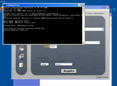 En el momento que pulsamos start se empieza la captura de la memoria del xp a través de la red con la red netcat que se ejecuta en Kali