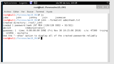 Se crea un directorio llamado forense/ms10_061. Use (-p) para suprimir un error si el directorio ya existe.