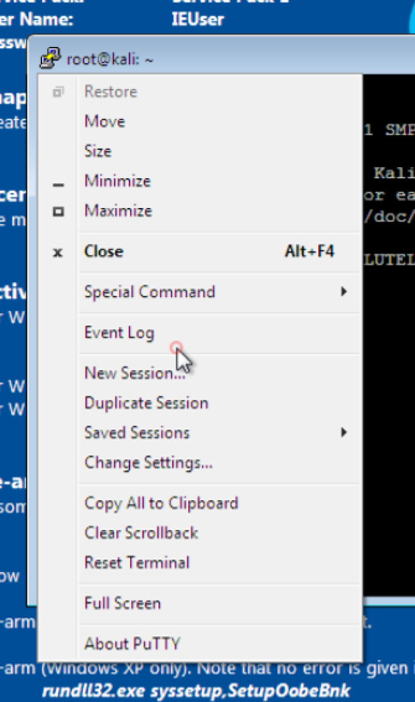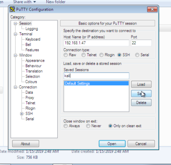 - Saved Sessions: Kali