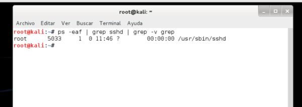 root@kail:~#~ps -eaf | grep sshd | grep -v grep