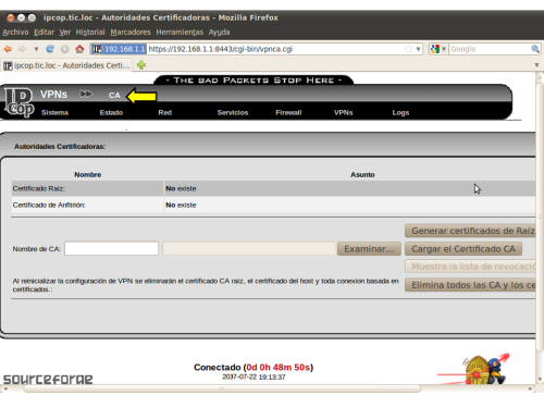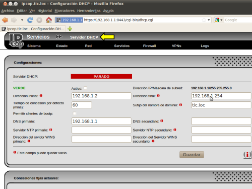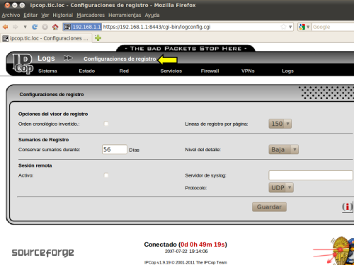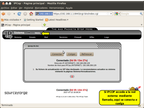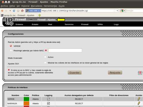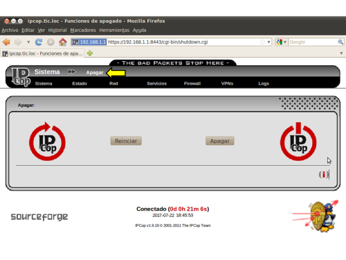 EL PRIMER INICIO DE IPCOP DESPUÉS DE SU INSTALACIÓN