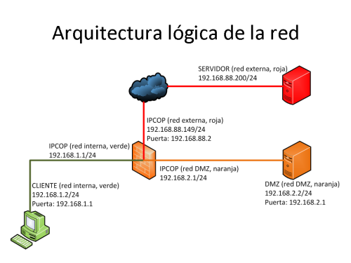 - Red naranja: red DMZ