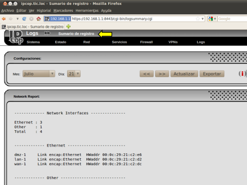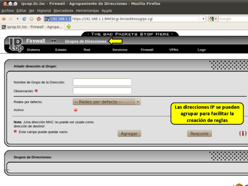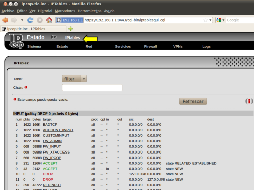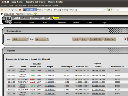 VISTAS DEL MENÚ FIREWALL DE LA CONSOLA WEB