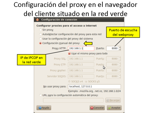 USO DE UN CLIENTE EN LA RED VERDE PARA CONFIGURACIÓN DE IPCOP DESDE LA CONSOLA WEB