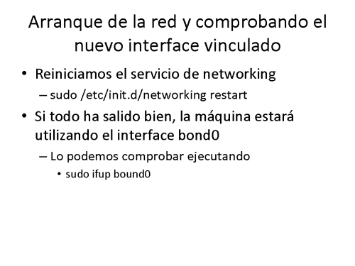 Con esto la máquina está utilizando la nueva configuración y sólo deberemos ejecutar desde el terminal: sudo ifup bound0