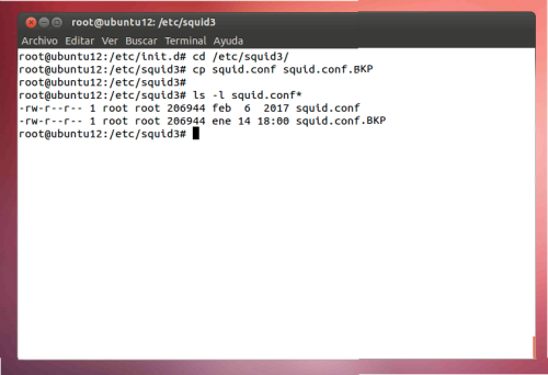 Backup del fichero de configuracion de Squid
