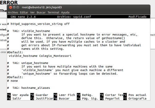 cd /etc/squid3/ grep -n "visible_hostname localhost" squid.conf