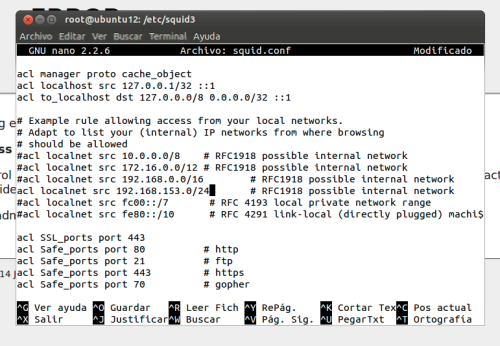 Porque pongo que me busque la subred 192.168.0 si yo estroy trabajando con la 192.168.153?, es muy sencillo por que el fichero squid.conf utiliza esa ip como regla por defecto a la hora de indicar ejemplos.