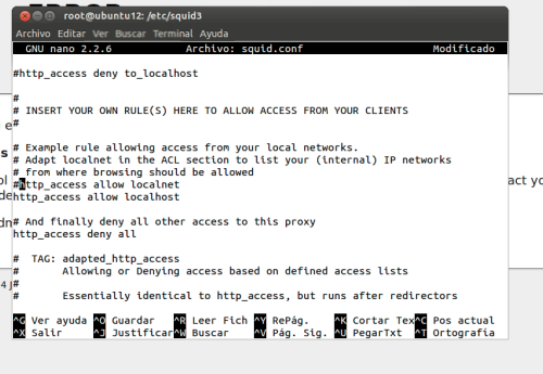 cd /etc/squid3/ grep -n "http_access allow localnet" squid.conf