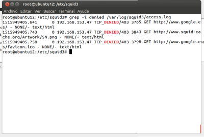 grep -i denied /var/log/squid3/access.log