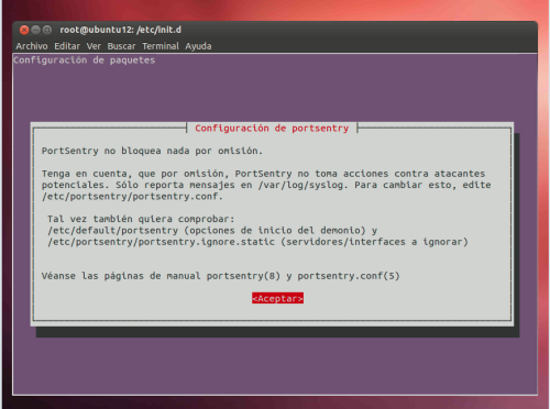 Ha detectado el BackTrack, ahora vamos a configurar el PortSentry en el Ubuntu