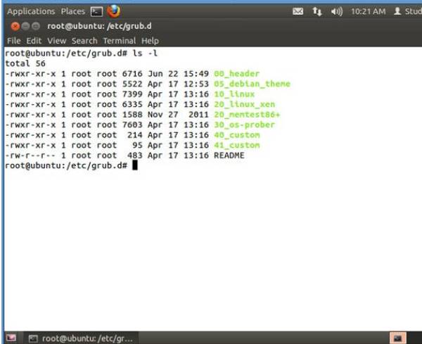 root@ubuntu:/etc/grub.d# update-grub root@ubuntu:/etc/grub.d# reboot
