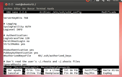 root@ubuntu:/# grep -v "#" /etc/ssh/sshd_config | grep Permit root@ubuntu:/# ps -eaf | grep -v grep | grep sshd root@ubuntu:/# date root@ubuntu:/# echo "nombre"