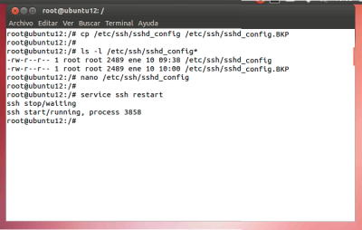 root@ubuntu:/# cp /etc/ssh/sshd_config /etc/ssh/sshd_config.BKP root@ubuntu:/# ls -l /etc/ssh/sshd_config*